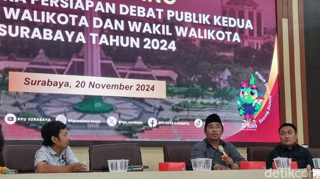 KPU akan menggelar debat kedua Pilwali Surabaya 2024. Tema dalam debat pamungkas ini adalah persoalan daerah.