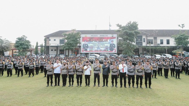 Pengerahan 600 personel ditandai dengan apel pergeseran pasukan (serpas) pengamanan tahap tungsura Pilkada 2024. Apel dipimpin langsung Kapolres Jombang AKBP Eko Bagus Riyadi.