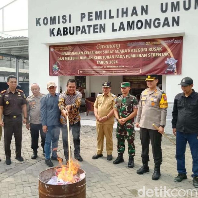 "Proses pemusnahan ini dilakukan untuk memastikan bahwa surat suara yang rusak tidak ikut beredar, sehingga menjamin integritas dan kelancaran pelaksanaan Pilkada," kata Ketua KPU Lamongan, Mahrus Ali kepada wartawan usai pemusnahan yang dilakukan di depan kantor KPU Lamongan, Jalan Basuki Rahmat, Selasa (26/11/2025).