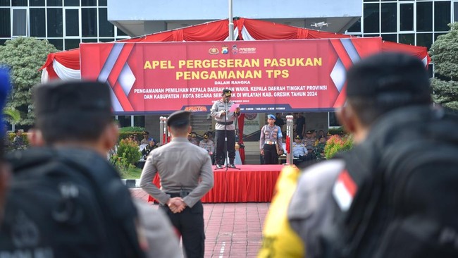 Apel tersebut digelar sebagai persiapan final sebelum akhirnya personel Polres Gresik disebar ke berbagai kecamatan untuk mengamankan pilkada.