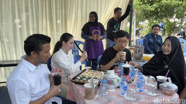 Mereka menikmati jajanan tradisional yang tersedia. Diketahui, Emil dan Arumi menggunakan hak pilihnya tepat pukul 08.22 WIB.