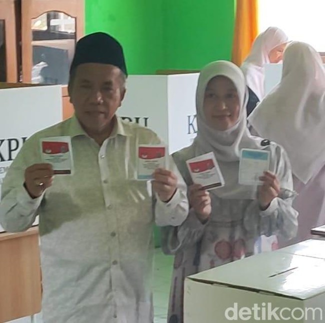 Gus Mujib mencoblos didampingi istrinya. Sebelum berangkat ke TPS, Gus Mujib menyempatkan diri ziarah ke makam orang tua dan leluhur di kawasan Pondok Pesantren Al-Yasini.