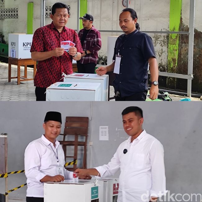 Calon Wali Kota Blitar nomor urut 1, Bambang Riyanto dan nomor urut 2, Syauqul Muhibbin menyalurkan hak pilihnya di TPS. Keduanya sama sama optimis bisa memperoleh suara unggul di kandang masing-masing.