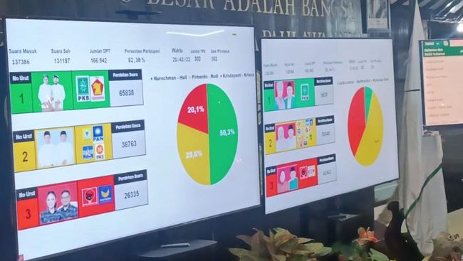 Perhitungan cepat hasil suara Pilkada Kota Batu 2024 yang dilakukan Bakesbangpol Kota Batu rampung. Hasilnya, paslon Wali Kota dan Wakil Wali Kota Batu Nurochman-Heli Suyanto menang telak.
