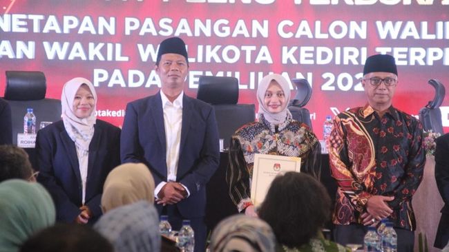 Komisi Pemilihan Umum (KPU) Kota Kediri resmi menetapkan Vinanda Prameswati, ldan KH Qowimmudin Thoha sebagai Wali Kota dan Wakil Wali Kota Terpilih di Pilkada 2024 Kota Kediri, Kamis, 9 Januari 2024. Penetapan ini menandai berakhirnya rangkaian proses pemilihan umum yang berlangsung dengan sukses dan damai.