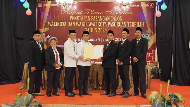 Penetapan Adi-Nawawi sebagai Wali Kota dan Wakil Wali Kota Pasuruan periode 2025-2030 berdasarkan keputusan Mahkamah Konstitusi (MK), bahwa tak ada pihak yang menggugat hasil Pikada Kota Pasuruan 2024.