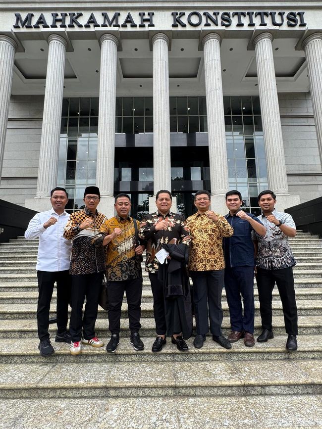Mahkamah Konstitusi menggelar sidang lanjutan perkara Pilgub Jatim nomor 265/PHPU.GUB-XXIII/2025, di Jakarta, Jumat (17/1/2025). Sidang kali ini, hakim MK memberi kesempatan pihak termohon yakni KPU Jatim dan pihak terkait (Tim Hukum Khofifah-Emil) untuk menyampaikan eksepsi.