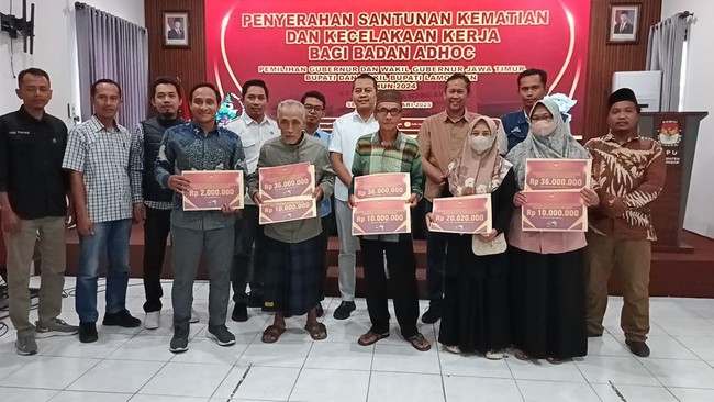 "Hari ini kami memberikan santunan kepada petugas badan ad hoc KPU. Santunan diberikan baik yang meninggal dunia maupun yang mengalami kecelakaan kerja pada saat menjalankan tugas pada Pilkada 27 November 2024 lalu," kata Mahrus Ali usai pemberian santunan di kantor KPU Lamongan, Senin (20/1/2025).