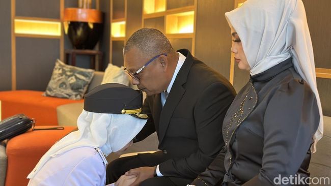 Vinanda yang mengenakan Pakaian Dinas Upacara Besar (PDUB) serba putih tampak khidmat saat melakukan sungkem. Pelantikan kepala daerah sendiri dilakukan Presiden Prabowo Subianto secara serentak.