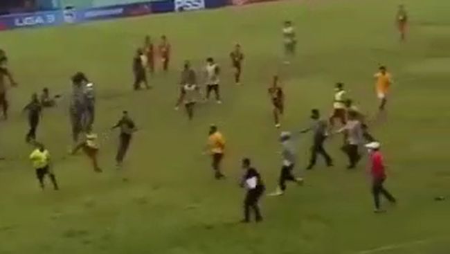 Laga liga 3 antara NZR Sumbersari FC vs Farmel FC ricuh. Wasit menjadi sasaran pukulan dan tendangan pemain dan official NZR Sumbersari.