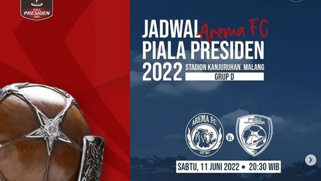 Babak penyisihan Grup D Piala Presiden 2022 mempertemukan Arema FC vs PSM Makassar pada Sabtu (11/6). Tiket big match ini dijual secara online, bagaimana cara membelinya?