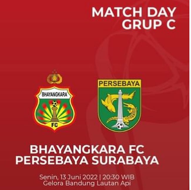 Laga Bhayangkara FC Vs Persebaya akan digelar di Stadion Gelora Bandung Lautan Api (GBLA). Kick off pukul 20.30 WIB.