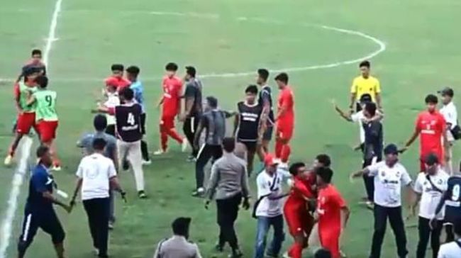 Cuplikan video laga tanding sepak bola yang ricuh itu, bahkan viral di medsos. Diketahui keributan ini terjadi pada babak kedua, tepatnya menit 81.35.