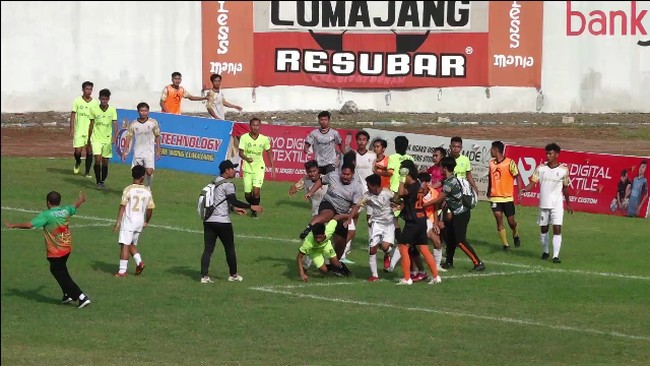 Kericuhan di Stadion Semeru Lumajang ini terjadi sesaat setelah pertandingan berakhir dengan skor imbang 1-1. Para pemain terlibat baku hantam di tengah lapangan disusul dengan official tim yang juga ikut masuk ke lapangan dan terlibat aksi saling pukul.