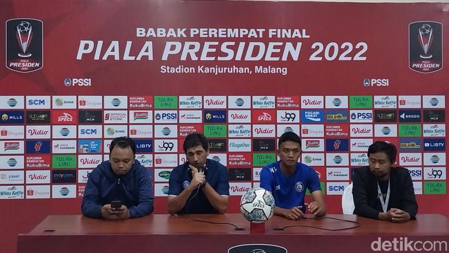 Eduardo Almeida bersyukur Arema FC berhasil mengalahkan Barito Putera dalam laga perempat final Piala Presiden 2022, Sabtu malam (2/7) Meski sebenarnya kemenangan itu diraih melalui babak adu penalti.