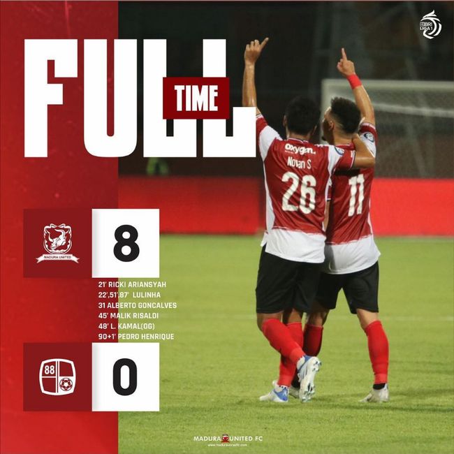 Laga tersebut digelar di Stadion Gelora Madura Ratu Pamelingan, Pamekasan pada Sabtu (23/7). Lulinha mengemas hat-trick. Gol ia cetak di menit ke-22, ke-51 dan ke-87.