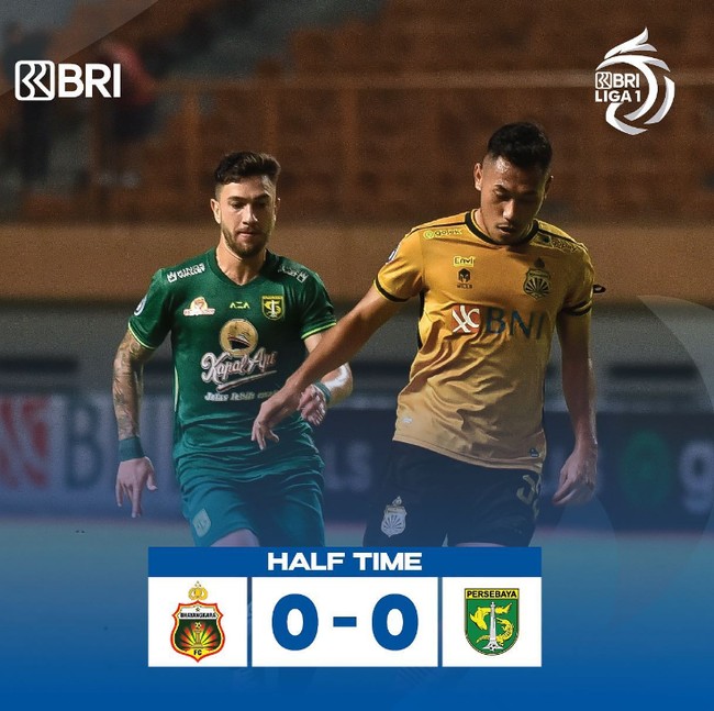 Persebaya melawan Bhayangkara FC di pekan ketiga Liga 1 2022/2023. Babak pertama berakhir dengan skor 0-0.