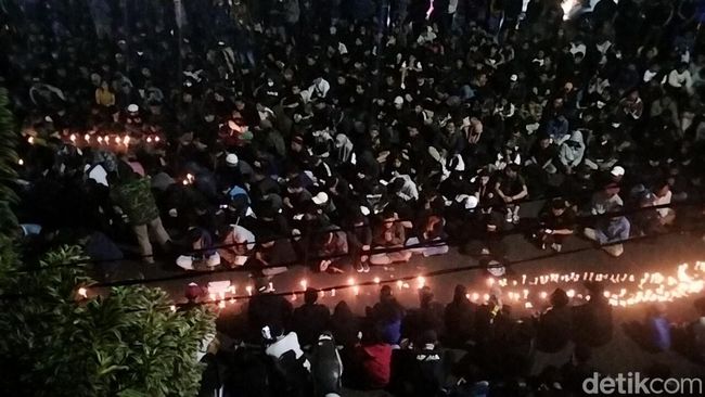 Mereka duduk bersila di depan lilin yang mereka nyalakan. Mereka juga sempat berorasi serta mendoakan para suporter yang meninggal dalam kejadian kemarin, di Stadion Kanjuruhan.
