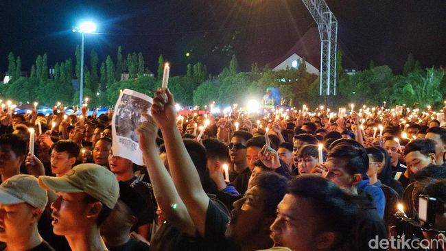 "Malam ini ada sekitar 20 aliansi suporter bola yang ada di Ponorogo berkumpul, ada ribuan orang yang berkumpul di sini," kata Irfan.