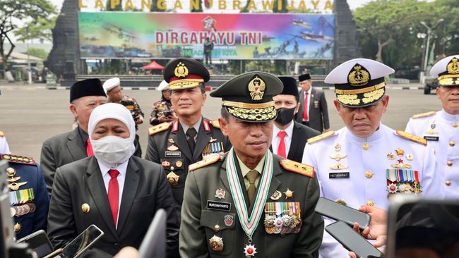 Sementara itu, upacara peringatan HUT TNI ke-77 ini dihadiri Forkopimda Jatim diantaranya Gubernur Jatim Khofifah Indar Parawansa, Kapolda Jatim Irjen Nico Afinta, Pangkoarmada, Ketua DPRD Jatim, Kajati Jatim, serta seluruh instansi terkait.