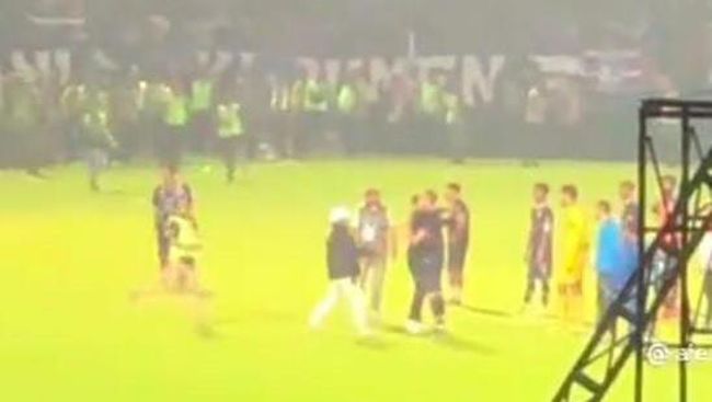 Terpancing dengan aksi dua Aremania tersebut, suporter lain lantas ikut turun masuk ke lapangan. Petugas keamanan mencoba untuk mengamankan situasi dengan memukul mundur para suporter yang ada di dalam lapangan.