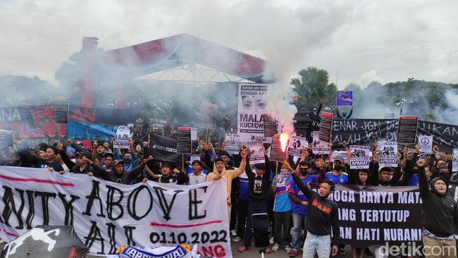 Ratusan orang menggelar unjuk rasa depan Balai Kota Malang. Ini merupakan aksi turun jalan besar-besaran kedua untuk menyikapi usut tuntas Tragedi Kanjuruhan yang telah menewaskan 135 orang.