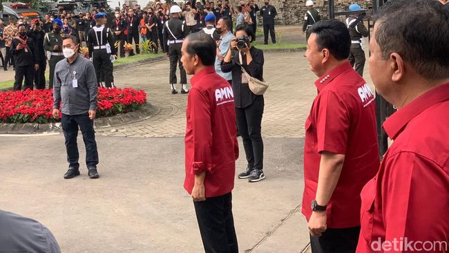 Jokowi tiba pukul 14.00 WIB disambut tarian dan lagu berjudul 'Terpesona' yang dinyanyikan perwakilan mahasiswa AMN.