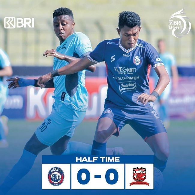 Aksi saling serang langsung tersaji di awal babak pertama. Hingga menit kelima, striker Madura United (MU) Alberto Goncalves nyaris membobol gawang Arema yang dijaga Adilson Maringa dengan sundulan.