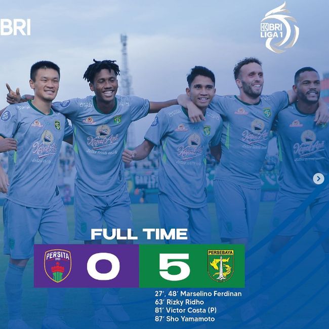 Gol lagi. Kali ini giliran Sho yang mencatatkan namanya di papan skor. Skor menjadi 0-5 untuk kemenangan telak Persebaya.