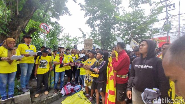 Spanduk dan poster tersebut bertuliskan 'PSSI Miskin Prestasi, Sarang Korupsi', 'Kembalikan Liga 2 serta PSSI Tak Becus', dan 'PSSI Ladang Korupsi'.