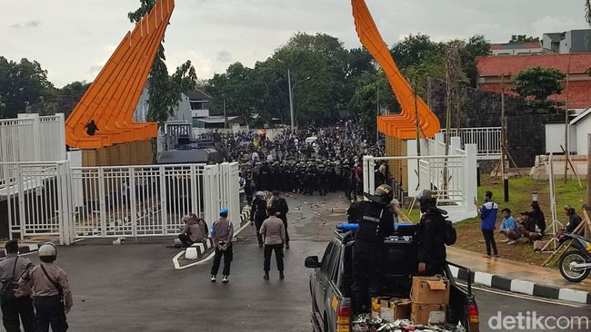 Berdasarkan pantauan di sekitar lokasi tinggal ada ratusan massa yang masih bertahan sekitar 100 meter dari gerbang. Namun mereka hanya berkumpul dan duduk-duduk di lokasi tersebut.