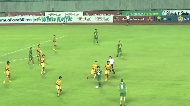 Kedua tim bermain lambat dan hati-hati pada menit-menit awal. Persebaya yang dominan sempat mengurung pertahanan Dewa United. Namun belum berhasil membuat peluang berarti.