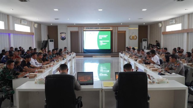 Rakor di Polrestabes Surabaya dipimpin langsung oleh Kapolrestabes Surabaya Kombes Pasma Royce bersama jajaran, serta TNI, Pemkot Surabaya, Panpel Persebaya dan perwakilan suporter.