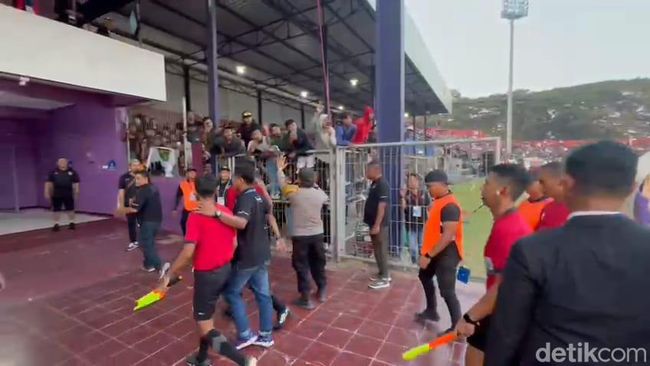 Dampaknya, wasit dan hakim garis sempat diamankan karena situasi sempat tak kondusif. Lemparan ke dalam lapangan pun tak terhindarkan.