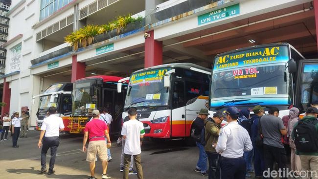 detikJatim pun berkesempatan untuk menaiki shuttle bus dari Terminal Intermoda Joyoboyo (TIJ). Di TIJ, terlihat puluhan bus berjajar.