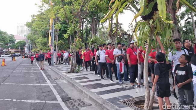 Dari Pantauan detikJatim, penonton Piala Dunia U-17 mulai mengantre dari pintu masuk sisi barat Balai Kota. Sedangkan pemberhentian shuttle bus ada di sisi timur Balai Kota.
