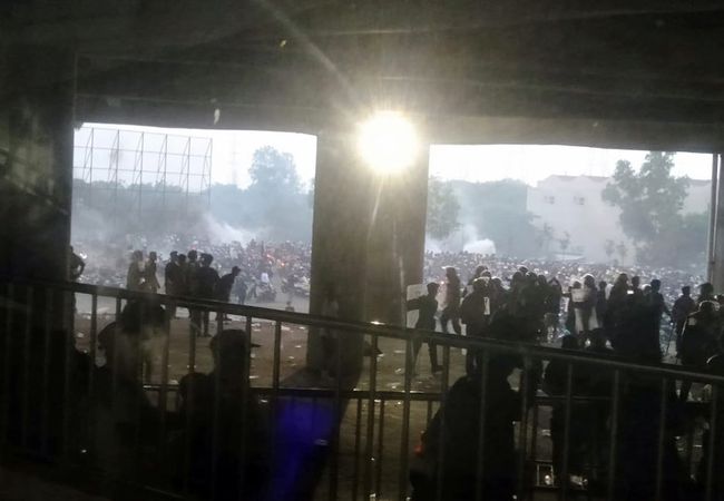 "Di situ sudah dipasang pagarnya, dijaga ndak bisa masuk. Akhirnya suporter ini seperti kesetanan, akhirnya melempar batu atau apa," ujar Wiwit.