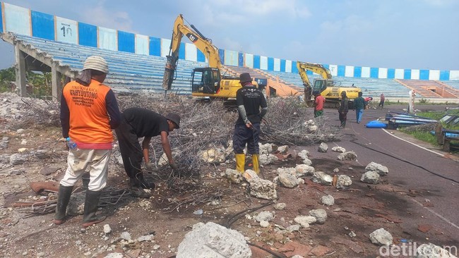 Selain mengerahkan alat berat, proses pembongkaran Stadion Surajaya Lamongan juga melibatkan sejumlah pekerja untuk memilah besi sisa bongkaran beton tribun. "Tenaga yang dilibatkan sekitar 25 orang," kata Hasan.