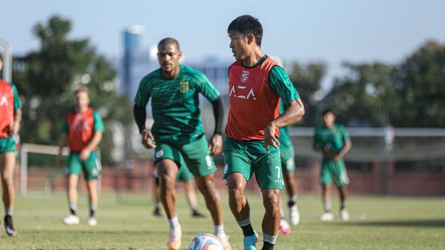 Song Ui-young belum juga bergabung dalam sesi latihan Persebaya Surabaya di Lapangan Komplek Stadion Gelora Bung Tomo (GBT), Surabaya, Jumat (9/2/2024). Situasi ini memunculkan pertanyaan apa yang terjadi kepada gelandang asal Singapura itu?