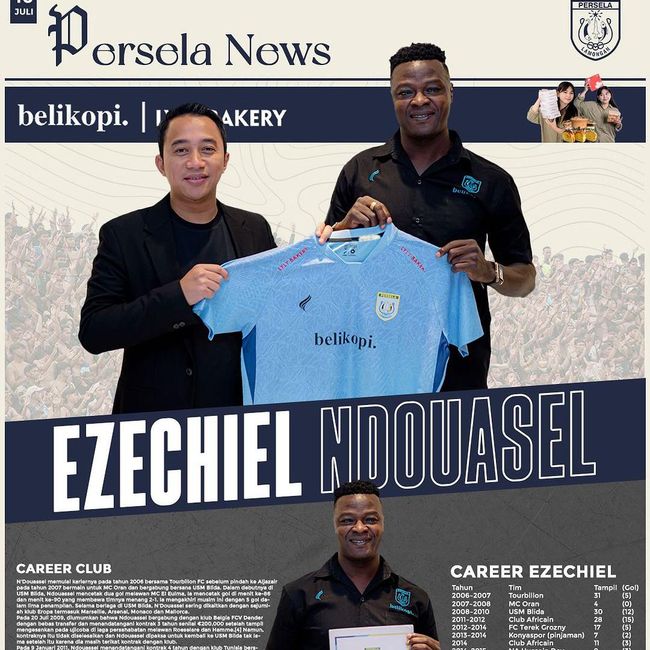 Sebelumnya, Persela Lamongan juga secara resmi memperkenalkan Ezechiel N'Douassel, sebagai rekrutan pertama, untuk menyambut Liga 2 musim 2024-2025. Kedatangan bomber gaek berusia 36 tahun itu, sekaligus mengisi satu slot pemain asing di skuat Laskar Joko Tingkir untuk musim depan. "N'Douassel striker yang haus gol. Kita bisa lihat di musim lalu, dia bisa cetak 2 goal ke gawang Persela dan berhasil mencatat namanya di deretan topscorer musim lalu bersama Bekasi City," kata Manajer Persela, Fariz Julinar Maurisal.