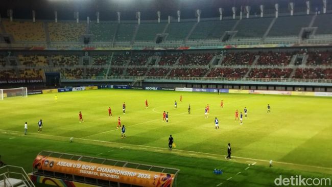 Laga Kamboja U-19 vs Indonesia U-19 berlangsung di Stadion Gelora Bung Tomo (GBT), Surabaya, Sabtu (20/7/2024) malam. Laga dipimpin wasit asal Oman, Al Bayushi Yahya Ahmed Ibrahim.