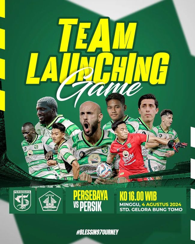 Persebaya Surabaya resmi mengumumkan bakal menggelar launching tim pada 4 Agustus 2024. Dalam kesempatan itu, Persebaya akan bertanding melawan Persik Kediri.