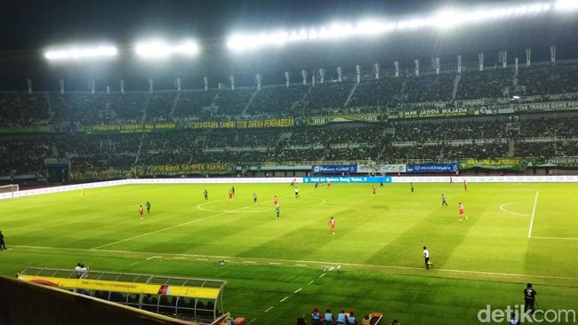 Duel Persebaya vs PSS tersaji di Stadion Gelora Bung Tomo (GBT), Minggu (11/8/2024) malam. Laga dipimpin wasit Steven Yubel Poli.