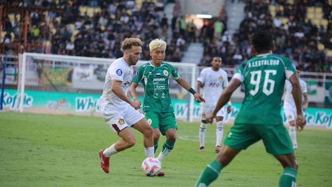Laga PSS kontra Persik berlangsung di Stadion Manahan, Solo, Senin (19/8/2024) sore. Persik berhasil menang dengan skor 2-0 lewat gol Ramiro Fergonzi dan Supriadi.