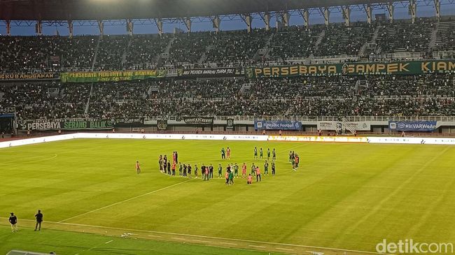 Momen menarik tersaji usai pertandingan Persebaya Surabaya kontra Persija Jakarta. Kapten Persija, Rizky Ridho, ikut menyanyikan Song For Pride di tengah lapangan bersama para pemain Persebaya.