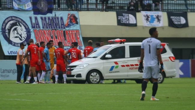 Kepanikan juga sempat terjadi di bench Persela. Bahkan pelatih Persela, Zulkifli Syukur berinisiatif berlari ke tengah lapangan dengan membawa tabung oksigen.