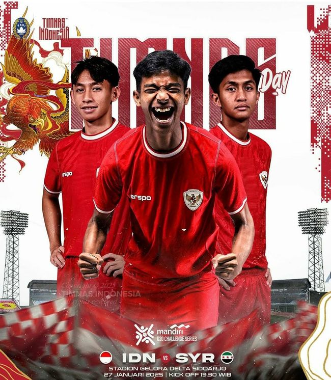 Laga Indonesia kontra Suriah tersaji di Stadion Gelora Delta Sidoarjo, Senin (27/1/2025). Pertandingan kick off pukul 19.30 WIB.