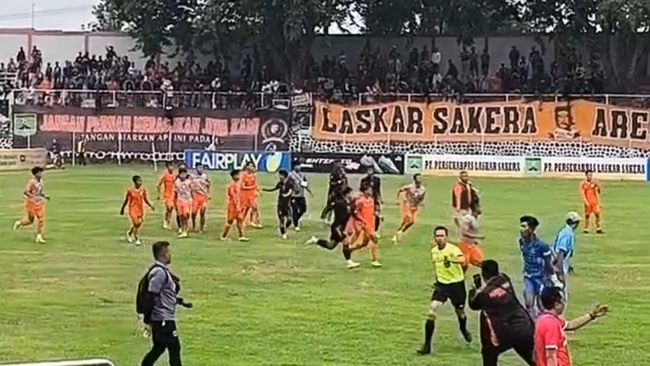 Laga Liga 3 PNM Nusantara antara tuan rumah Persekabpas melawan Tornado FC di Stadion R Soedrasono, Pogar, Bangil, Kabupaten Pasuruan, ricuh. Kericuhan terjadi di akhir laga setelah wasit meniup peluit panjang tanda berakhirnya pertandingan dengan skor akhir 1-2 untuk Tornado FC.