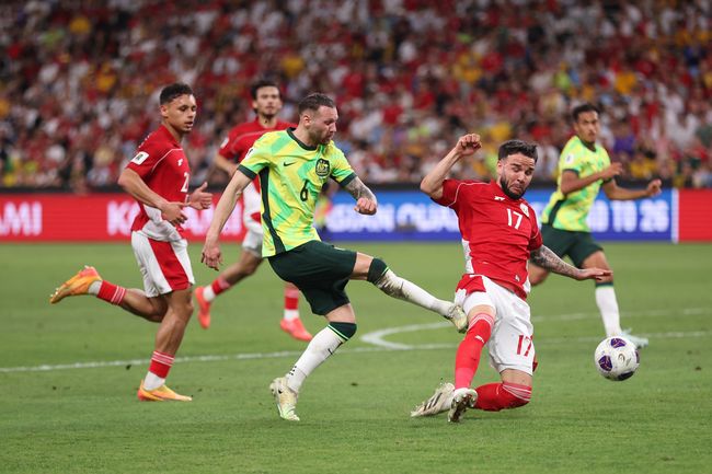 Australia mendapatkan hadiah penalti menit 17. Wasit memberikan tendangan titik putih usai meninjau VAR dan menganggap Nathan Tjoe-A-On melakukan pelanggaran kepada Lewis Miller.