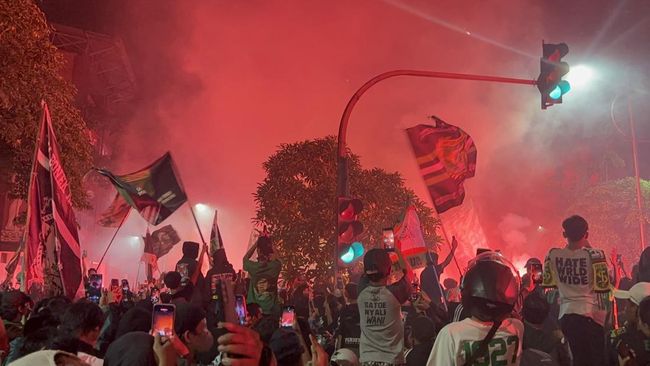 Pantauan detikJatim, sejak pukul 22.00 WIB, para Bonek telah memadati depan Stadion 10 November tersebut. Mereka mengenakan atribut Bonek, mulai kaus, bendera, dan lainnya.